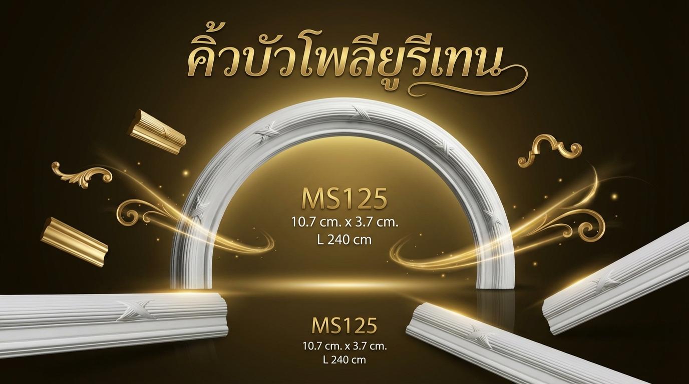 MS125 เป็นบัวผนังแบบมีลวดลายที่มีเส้นแนวนอนและดีเทลประดับบนตัวชิ้นงานคล้ายรูป X เป็นช่วงๆตลอดทั้งเส้น (ยาว 2.40m.) เหมาะกับบ้านสไตล์ Modern Classic, Luxury Contemporary หรือบ้านที่ต้องการความหรูแบบมีรายละเอียด