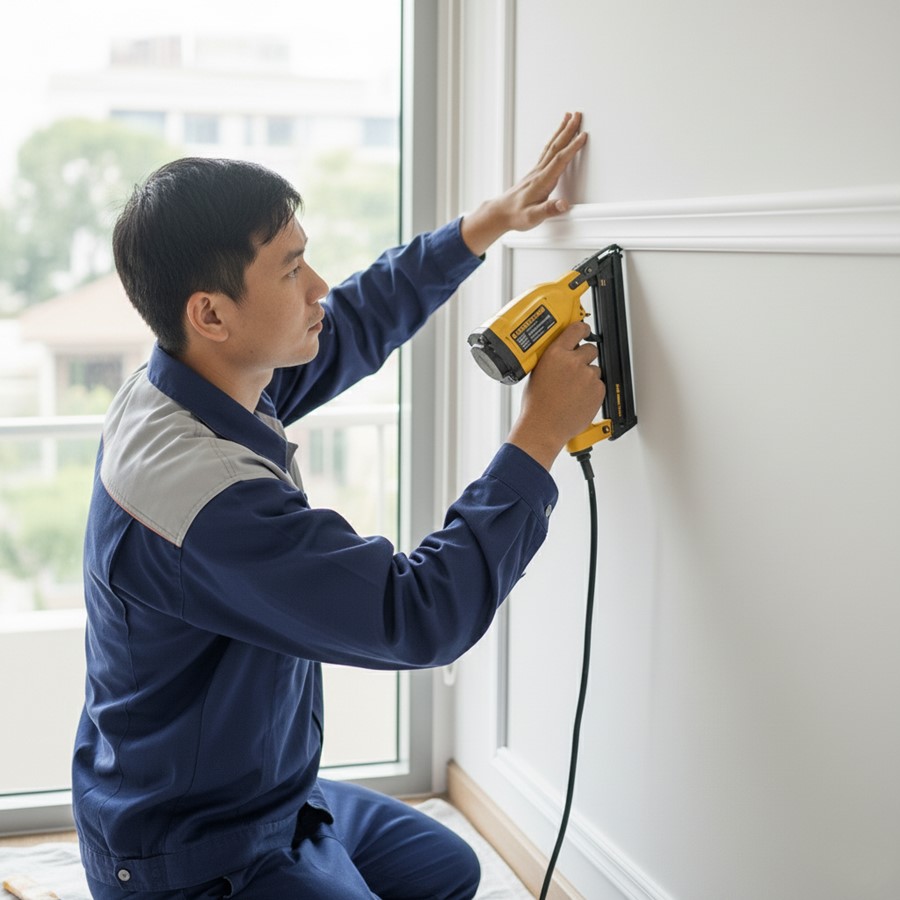 เพียงใช้กาวตะปูและปืนลมยิงแม็ก ก็สามารถติดตั้งได้เรียบร้อย